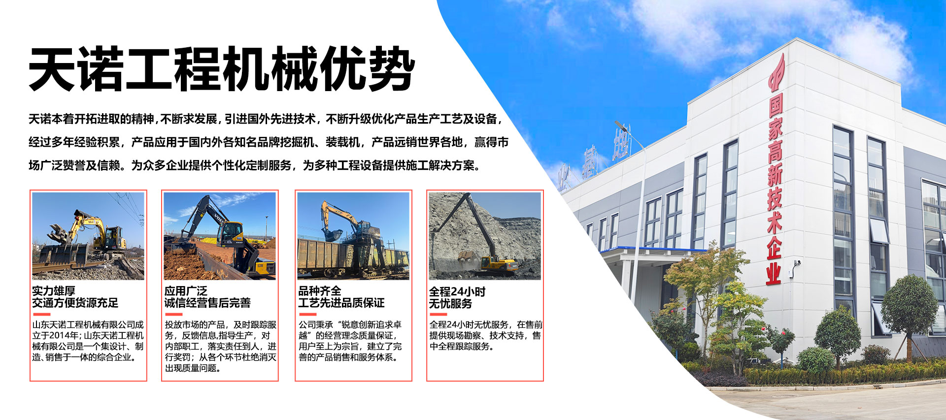 山東天諾工程機(jī)械有限公司成立于2014年;天諾工程機(jī)械是一個集設(shè)計、制造、銷售于一體的綜合企業(yè),生產(chǎn)產(chǎn)品適配各種工程機(jī)械設(shè)備,主要有:鐵路換枕機(jī)改裝,挖掘機(jī)升高底盤,挖掘機(jī)駕駛室升降,加長臂、三節(jié)臂、打樁臂、巖石臂定制,多型號挖斗鏟斗定制,裝載機(jī)防滑履帶,多種類鐵路維護(hù)屬具等產(chǎn)品。